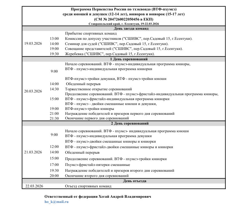 Чемпионат России Список судейской коллегии, Справка мандатной комиссии, Командный зачет - СКАЧАТЬ