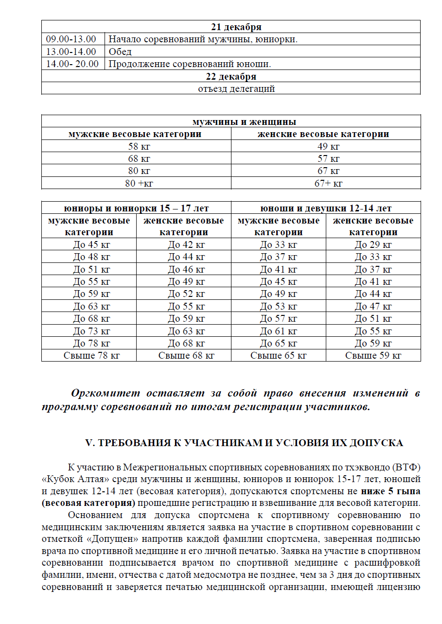 Оргкомитет оставляет за собой право внесения изменений в программу соревнований по итогам регистрации участников