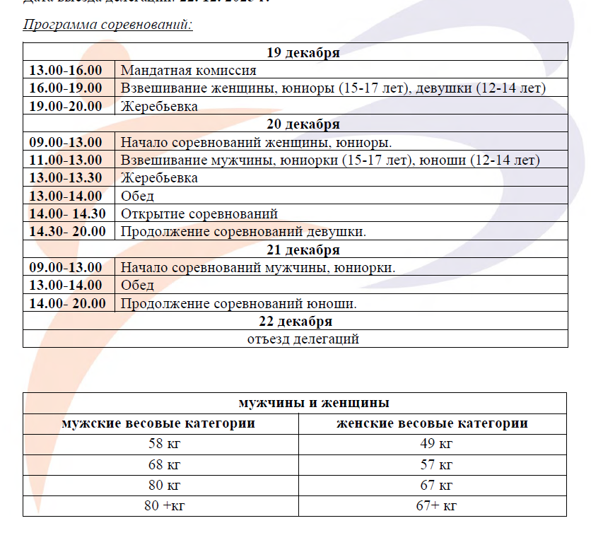 Дата заезда делегаций: 19. 12. 2025 г.
