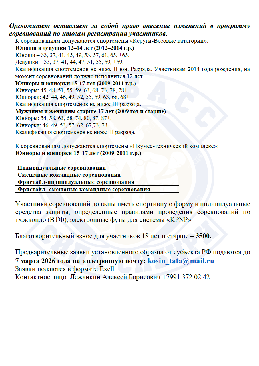 Регламент проведения Межрегиональных соревнований "Сила Сибири" (пхумсэ) (юниоры/юниорки, юноши/девушки) - СКАЧАТЬ