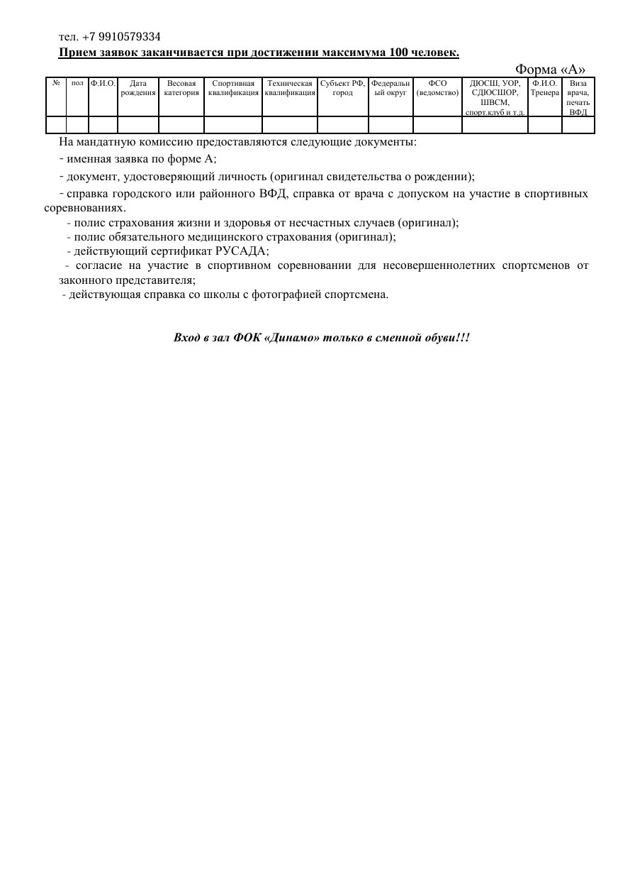 Размещение спортсменов и тренеров - СКАЧАТЬ