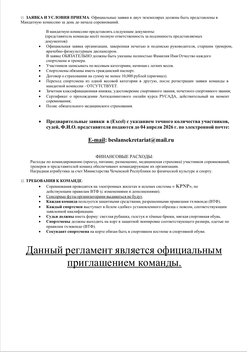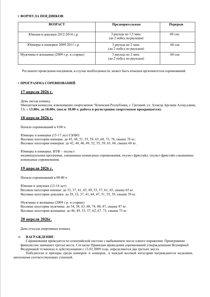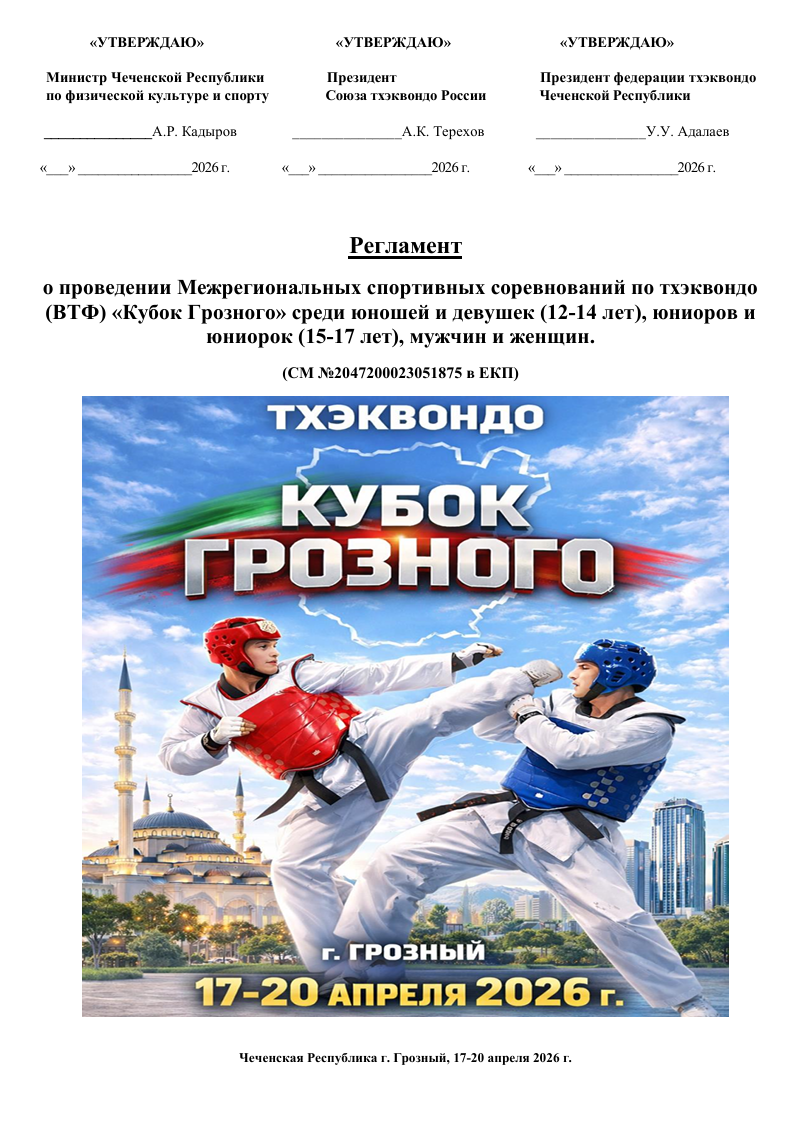 Положение о проведении Межрегиональных спортивных соревнований по тхэквондо (ВТФ) «Кубок Грозного» (ЕКП 2047200023051875) - СКАЧАТЬ