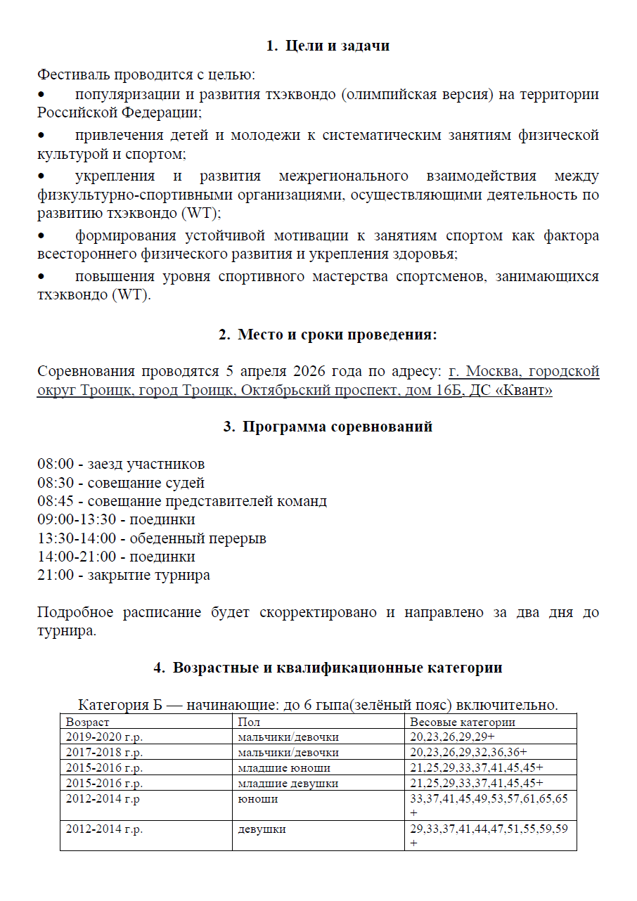 Положение о проведении Открытого фестиваля по тхэквондо ВТ "Кубок прогресса" - СКАЧАТЬ