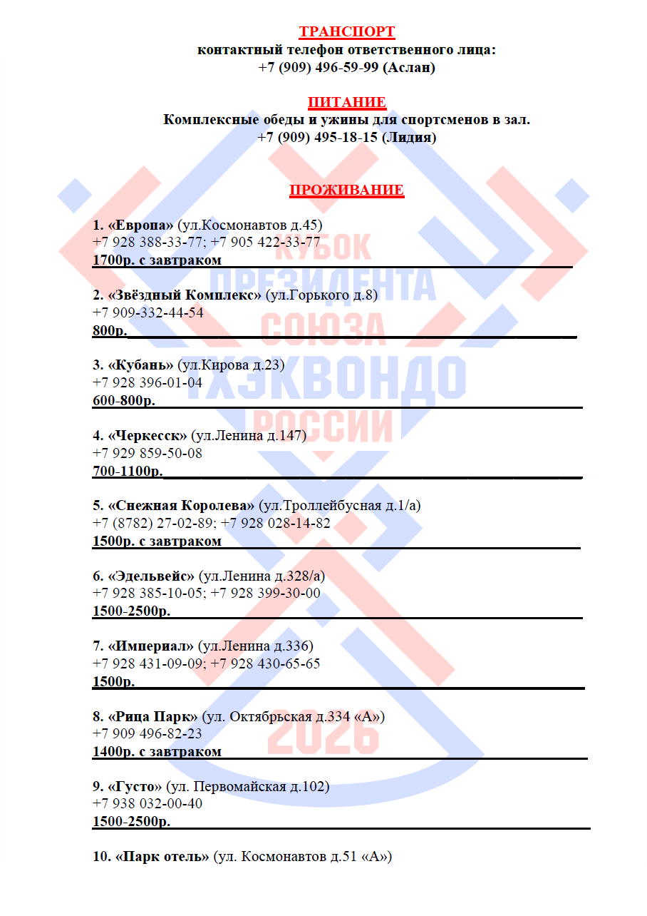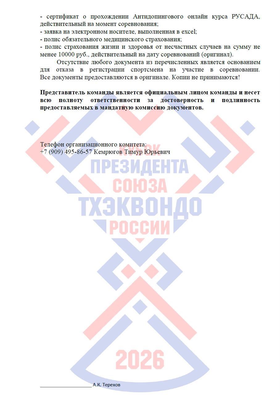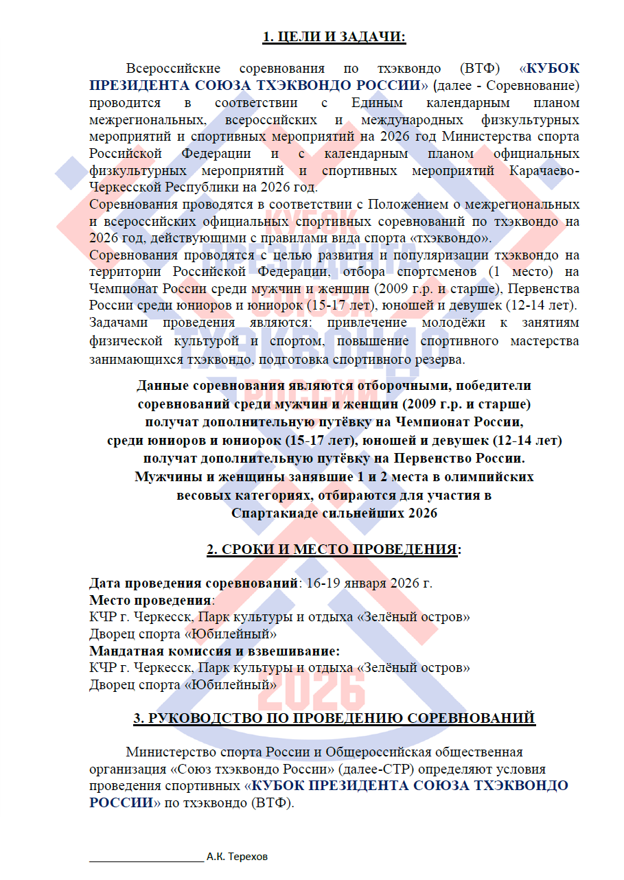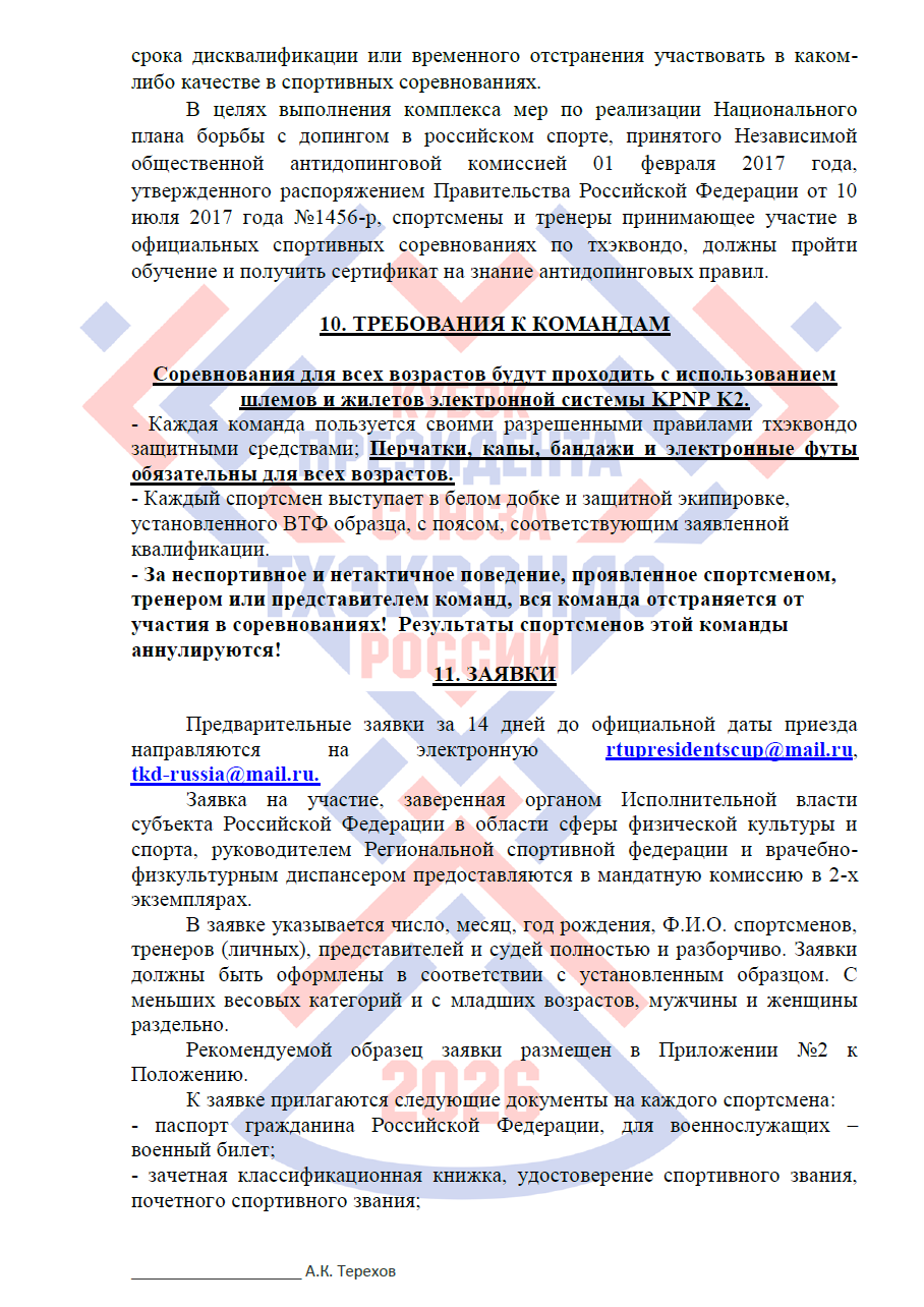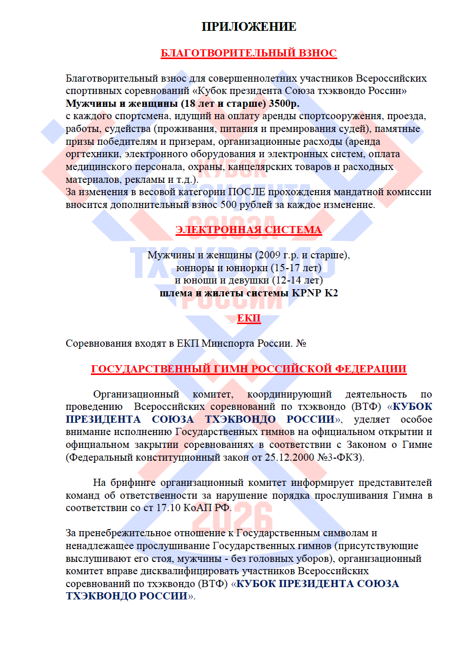 Положение о проведении Кубка Президента СТР - СКАЧАТЬ