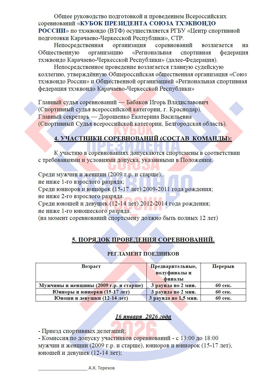 18.01.2026 Корт 4 - Кубок Президента Союза тхэквондо России