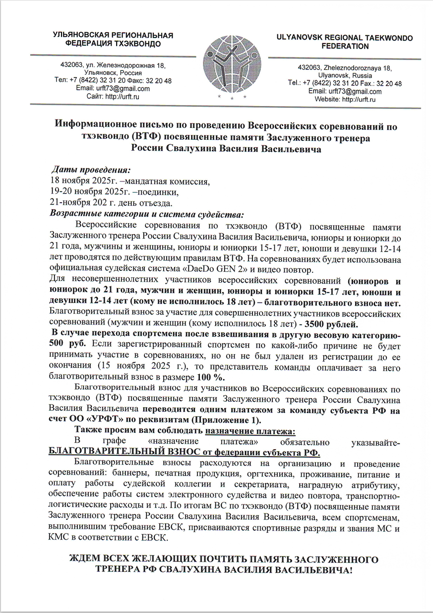 Регламент проведения Всероссийских соревнований - СКАЧАТЬ