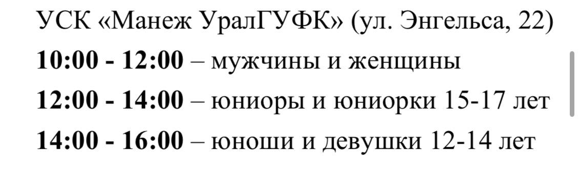 Начало Фестиваля в 08:00 по адресу: Легкоатлетический манеж УралГУФК,