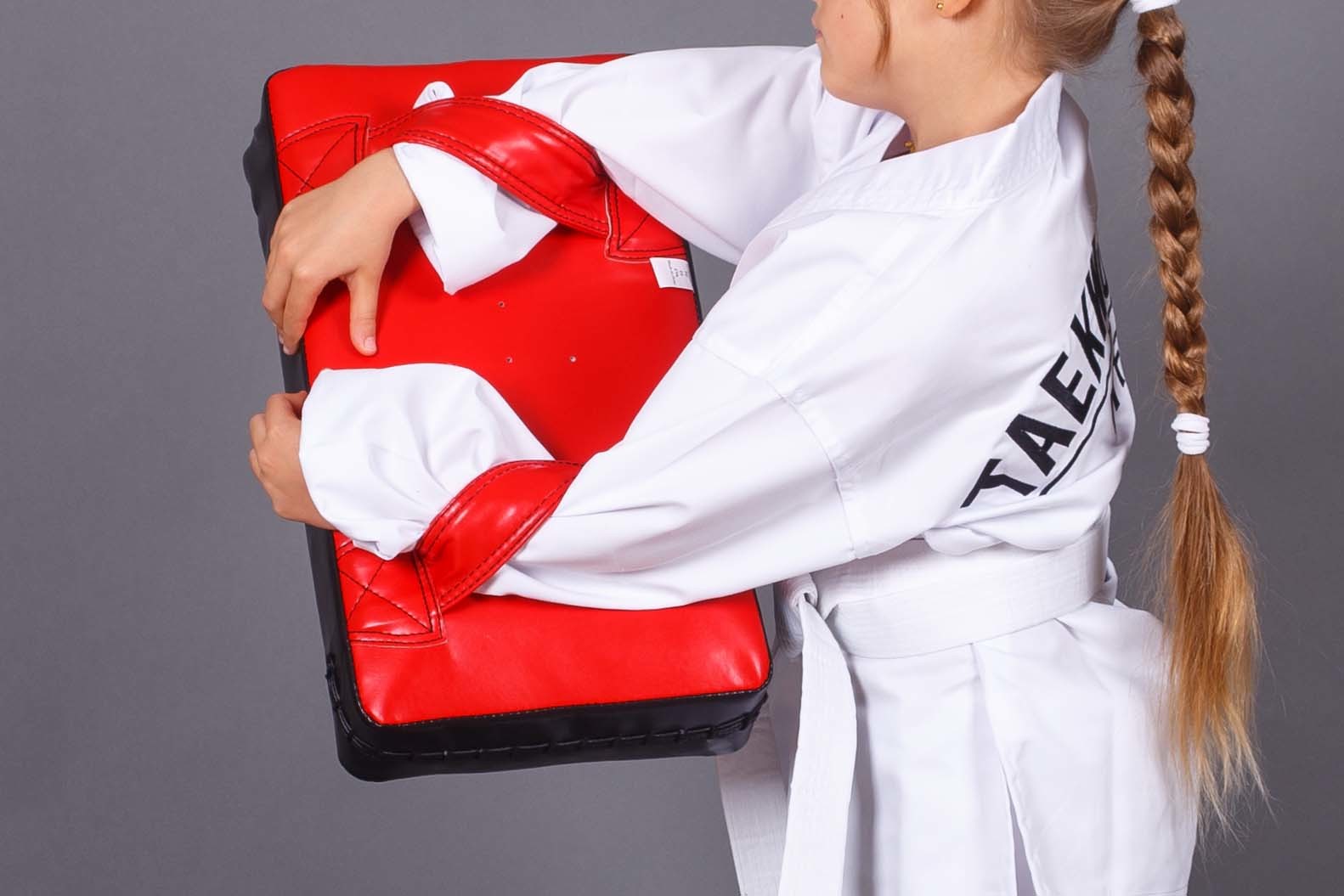 Для отработки ударной техники спортсменов тхэквондо. Косые ручки для удобного хвата. Размер: 43х25,5х10 см.