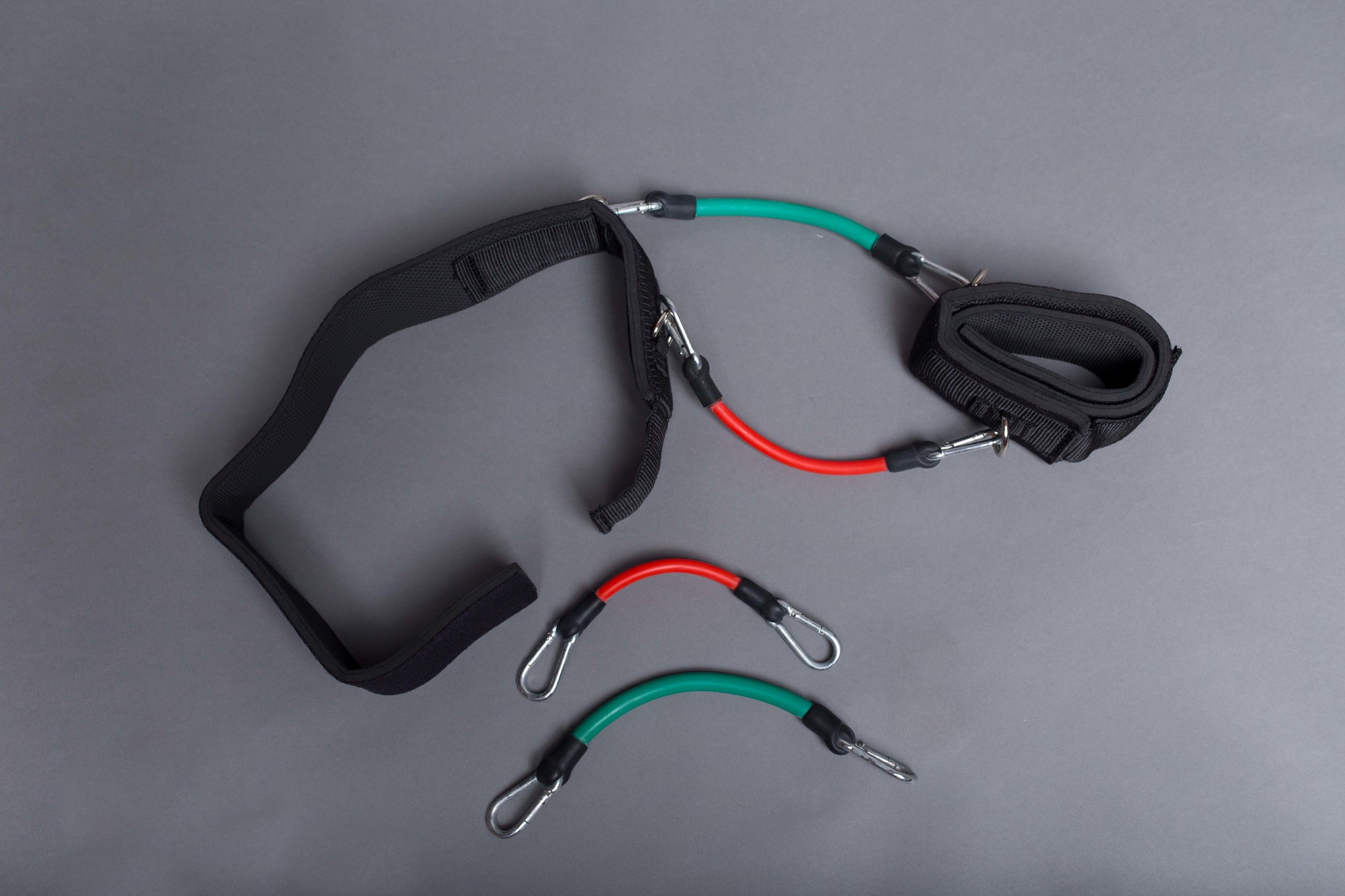 В комплект входят 2 набора жгутов (2 зеленых и 2 красных), разной степени натяжения, что позволяет регулировать нагрузку.