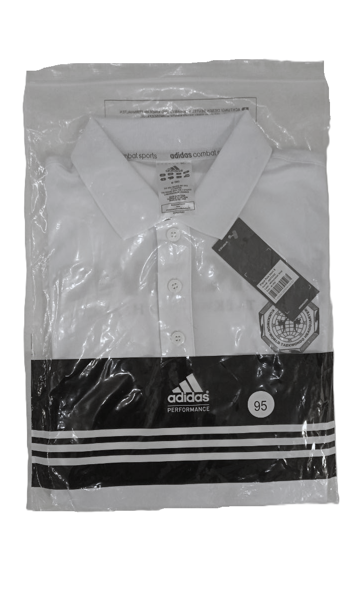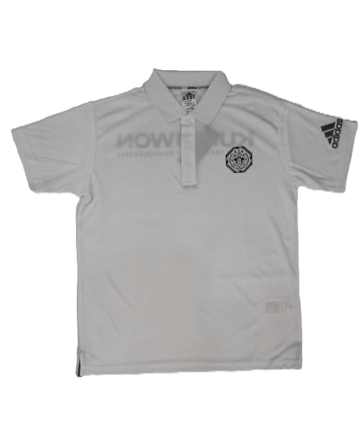 Легкая летняя футболка-поло для спортсменов тхэквондо с коротким рукавом Adidas мод. Pigue Polo Short II, серия Kukkiwon.
