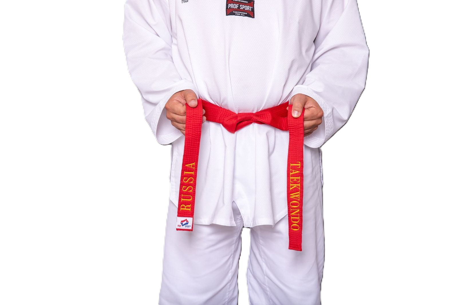 Пояс для тхэквондо ProfSport с высококачественной вышивкой. Надписи "TAEKWONDO" и "RUSSIA". Ширина 4 см. Хлопок 100%.