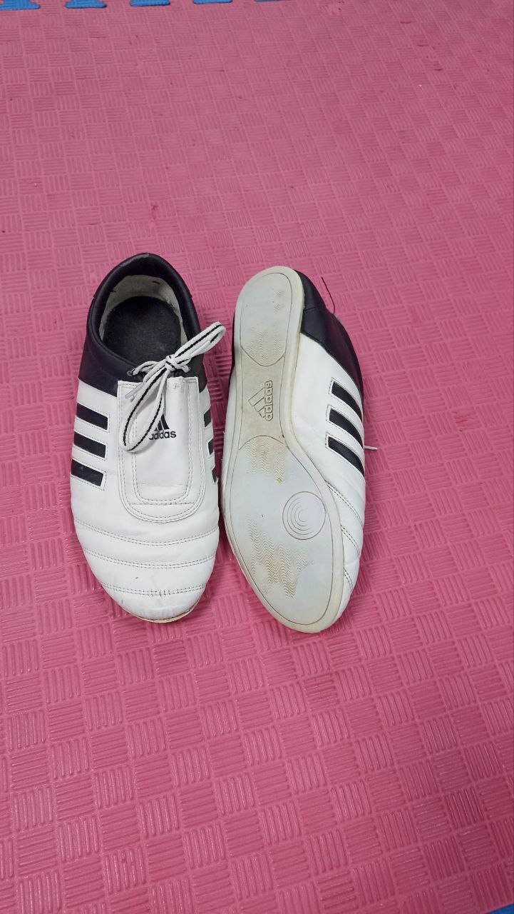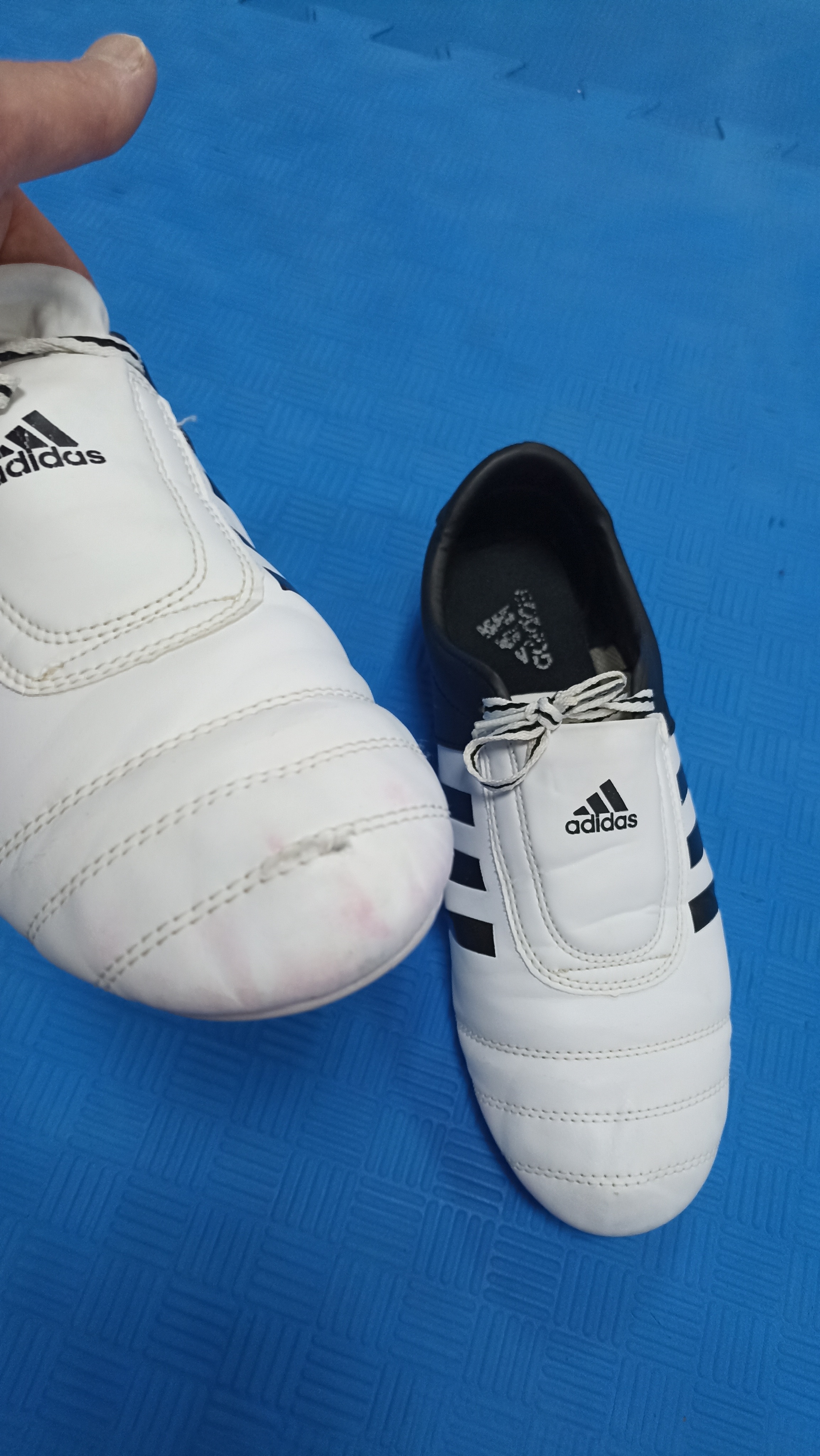 Adidas степки модели ADI- KICK имеют белую переднюю часть, черную пятку, 3 черные полосы по бокам и вышитый логотип adidas в передней части.