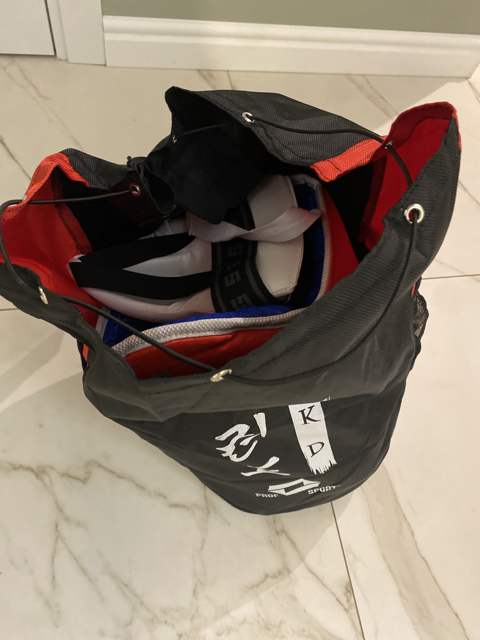 - Вмещает внутрь полный комплект экипировки тхэквондиста вместе с протектором!